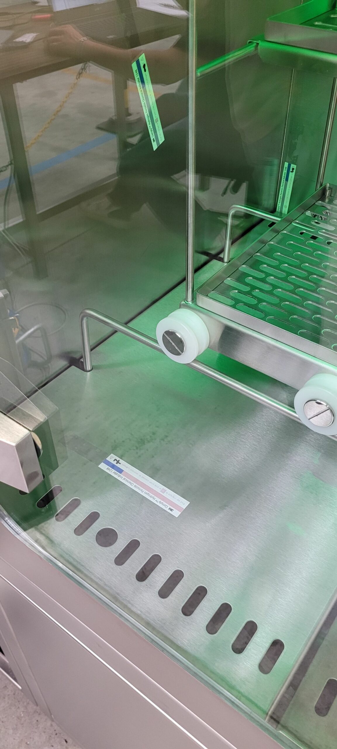 The pictures below show the use of chemical indicators that react to exposure to Peroxide H2O2.