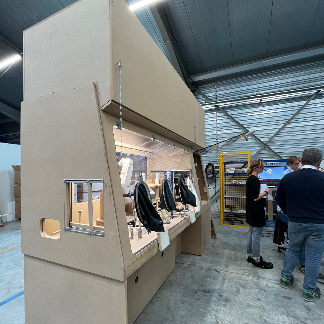 We used different elements, wood, stainless steel and 3D printing, to make up the chamber of the isolator. As an example of that, you can see the handling robot on some pictures.