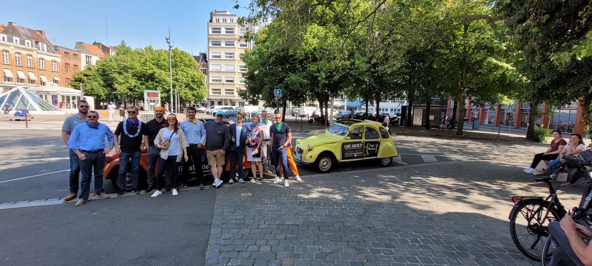 We alternated working sessions with some friendly moments like this superb barbecue with all EREA PHARMA employees as well as a memorable visit to Lille in a typical French vehicle.