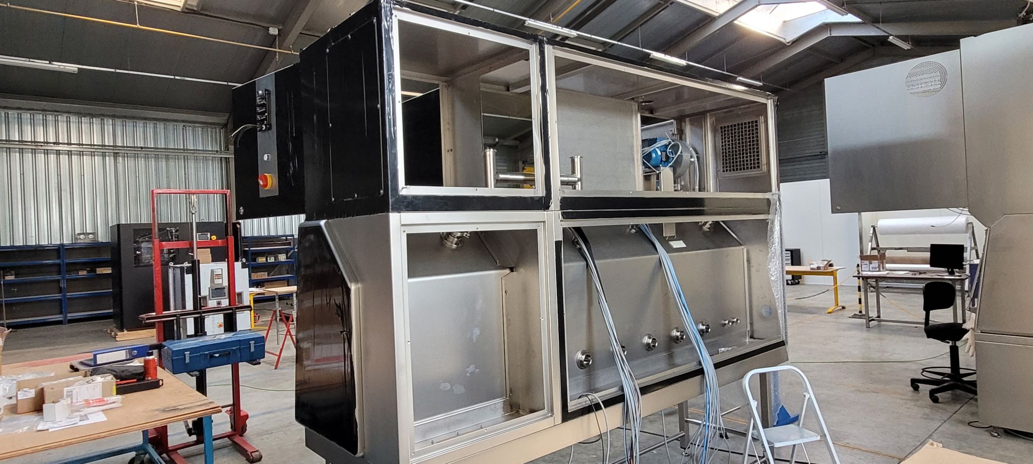 On behalf of one of our foreign customers, we are producing an OEB5 classified isolator to handle toxic products. There is a loading hatch with a glove in order to carry out the first manipulations, then a room with 4 gloves to carry out the weighings, the mixtures as well as the conditioning prior to the external bagging.